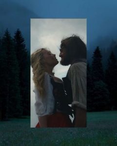 La intensidad del amor entre Heathcliff y Catherine se refleja en una escena de beso en medio del paisaje natural.