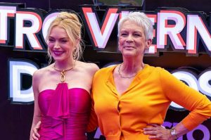 Imagen tomada durante la premiere de Otro Viernes de Locos en CDMX, donde Lindsay Lohan y Jamie Lee Curtis posan juntas frente a la prensa, reflejando la emoción por su regreso en pantalla