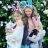Rebecca comparte un momento divertido con sus hijas en una celebración temática.