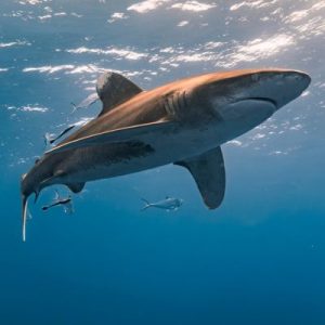 Imagen de un tiburón desplazándose bajo el agua en su entorno natural.