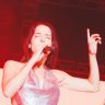 Majo Aguilar sobre el escenario con top de lentejuelas
