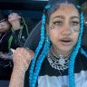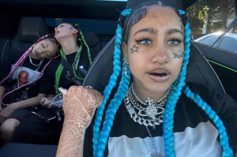 North West selfie con tatuajes en el rostro y sus amigas acostadas en la parte trasera del auto