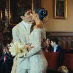 Luciendo un traje beige y un vestido entallado de Paolo Sebastian, Charles Leclerc y Alexandra Saint Mleux se casaron este fin de semana