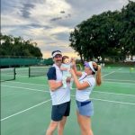 La pareja comparte un momento deportivo en familia junto a su hijo en una cancha de tenis.