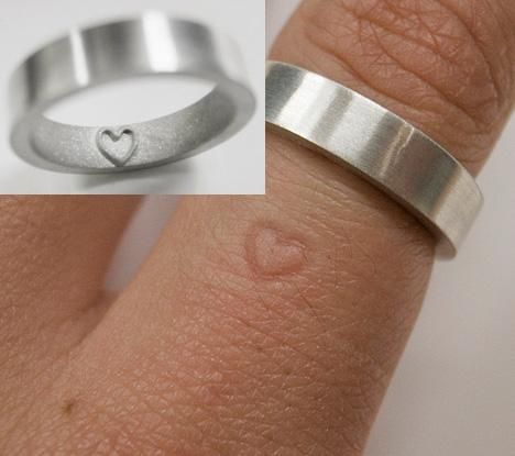 Marquen sus huellas ya sea dentro o fuera de los anillos. Incluso pueden poner media huella de sus dedos en cada anillo y complementar ambos con la forma de un corazón. Una forma muy moderna y romántica de combinar con tu pareja.