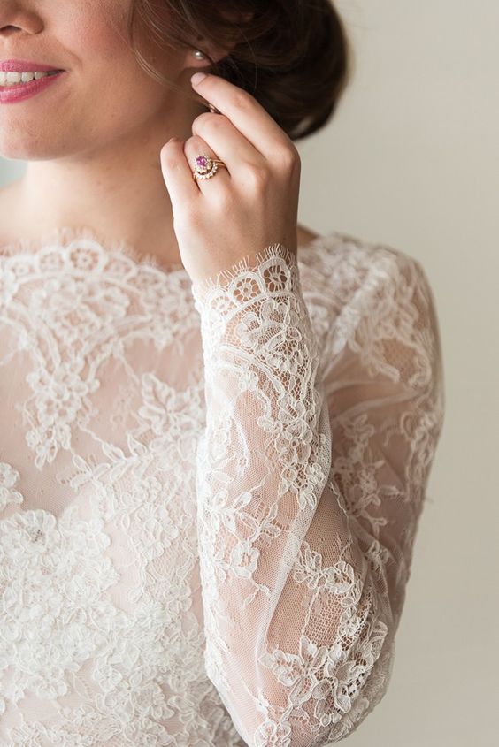 1. Elige las mangas de encaje, te mantendrán abrigada sin perder ese toque romántico y hermoso.
