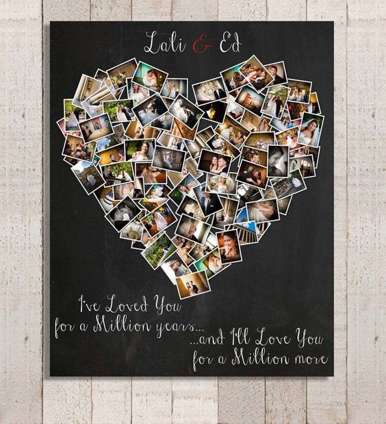 1. Si buscas na forma original de regalarle fotografías, puedes pegarlas sobre un molde que indique el número de años que llevan juntos.