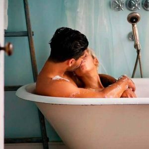 Pareja compartiendo un momento de intimidad y conexión en una tina, una imagen que refleja el disfrute y la cercanía en pareja