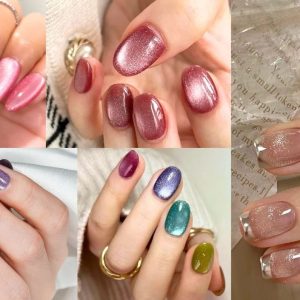 Manicura en azul con efecto cat eye, un acabado magnético que aporta brillo, estilo y un toque moderno y sofisticado.