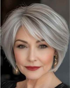 Un corte moderno y versátil que estiliza el rostro y realza el brillo natural del cabello canoso
