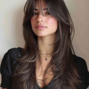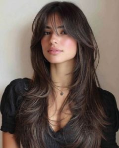 Corte de cabello largo con fleco largo