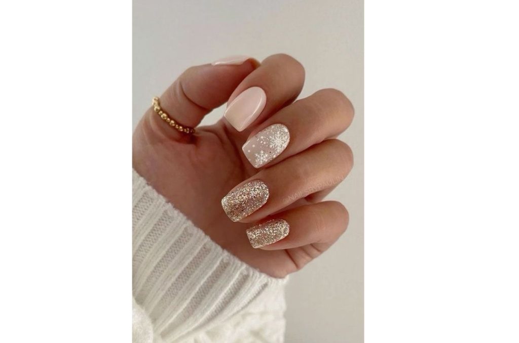 Si te gusta el glitter, pero de igual manera buscas un diseño sofisticado y elegante, opta por agregar tintes de esta textura en tonalidades claras y muy nude. Así evitarás que se vea saturado y de igual forma le estás dando un toque de brillo.