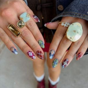 Uñas de colores con patrón a cuadros