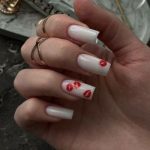 Uñas cuadradas con besos en color rojo