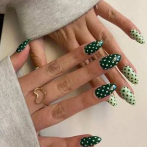 Crea un diseño moderno y llamativo con double polka dots en tonos verdes