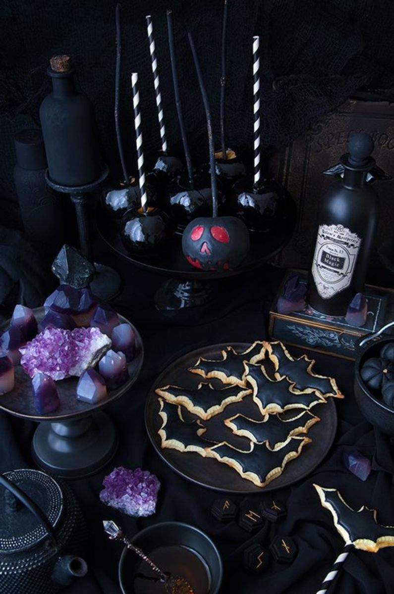 Mesa con dulces decorados con formas de calabazas, fantasmas y murciélagos típicos de Halloween.
