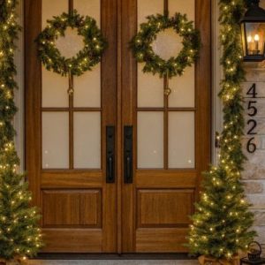 Puerta decorada de navidad