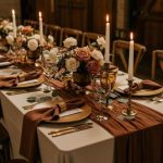 Decoración rústica en color chocolate y flores de temporada