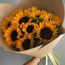 Un ramo de girasoles no necesita más que un envoltorio de papel kraft para lucir hermoso