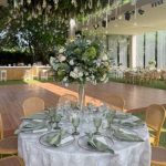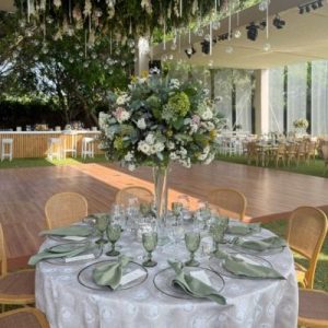 Si eliges centros de mesa altos, opta por bases delgadas y una composición menos densa