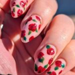 Rosas rojas sobre una base nude y detalles en verde para un efecto realista