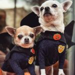 Perros chihuahua disfrazados para Halloween sobre calabazas