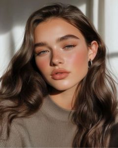 Look de ojos, rostro y lanios en tonos nude y durazno