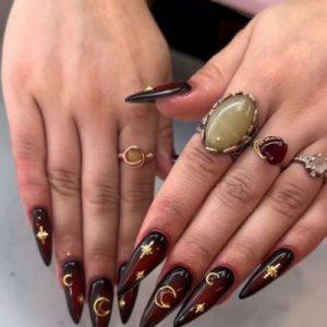 Esmalte vino con degradado a negro y stickers dorados