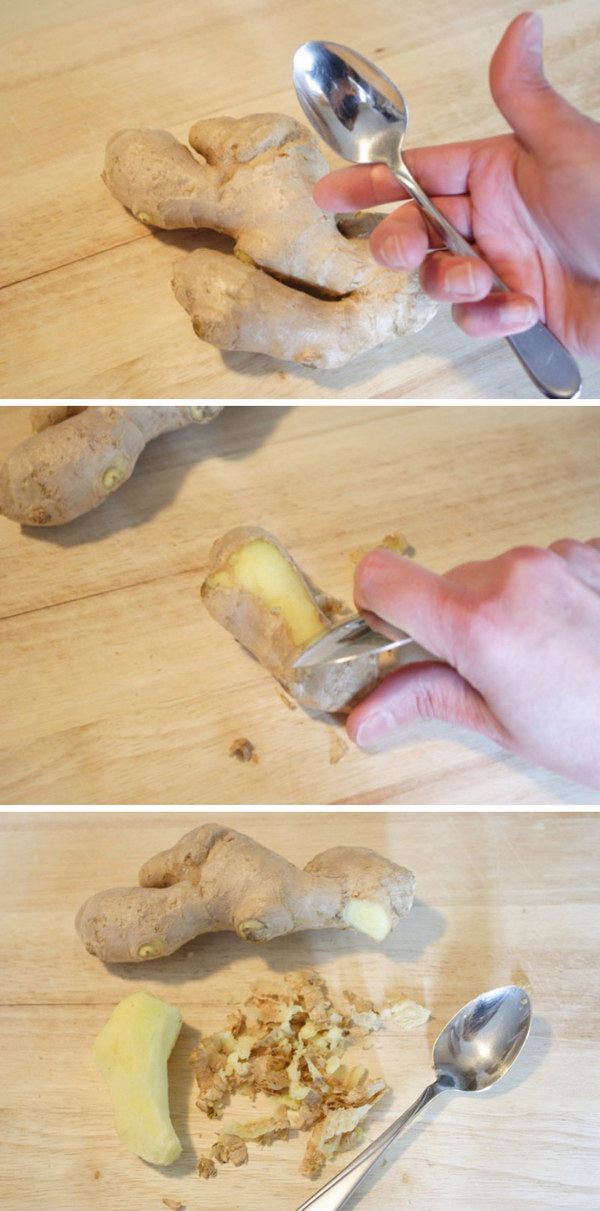 6. En lugar de pelar el jengibre con un cuchillo, inténtalo con una cuchara, será mucho más rápido y sencillo.