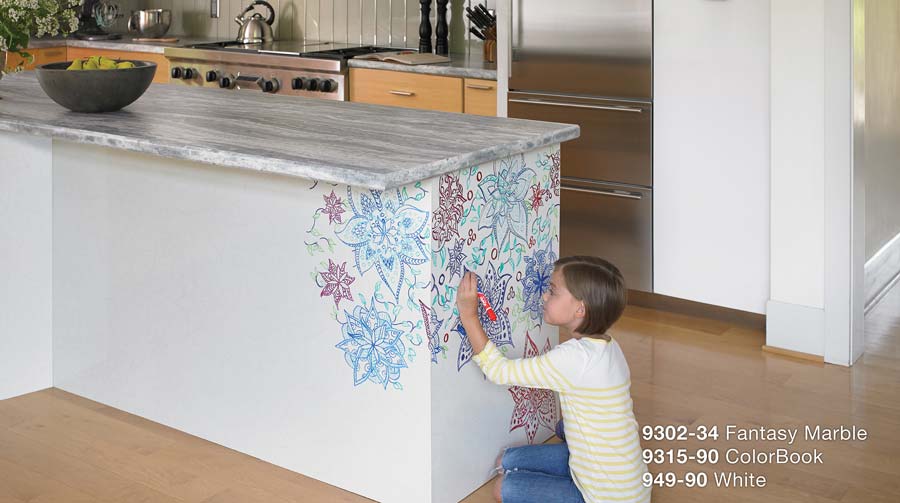 Aplica los distintos modelos de Superficies para Escribir Formica® en donde quieras. Deja mensajes, anota recetas, pendientes, ideas…, dibuja, crea. ¡Mira todo lo que puedes hacer con esta nueva línea de superficies!