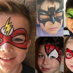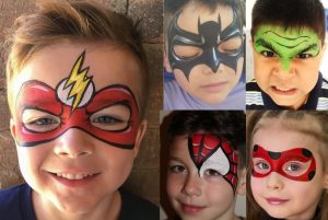 Cinco niños con maquillajes de superhéroes, listos para salvar el día con estilo