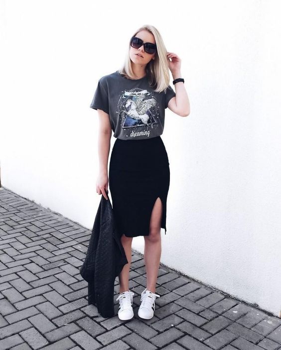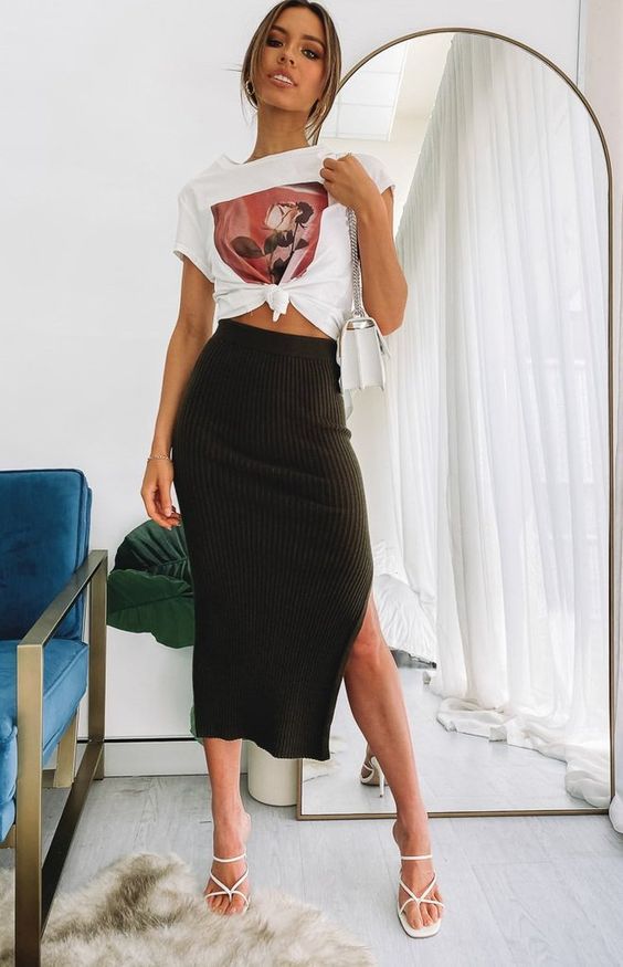 Estas faldas se han vuelto muy populares este 2021 porque además de ser ultra favorecedoras son económicas y cómodas. Opta por una en color negro y suma una playera estampada. Lee: 10 tips de moda para llevar skinny jeans si eres chaparrita