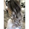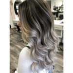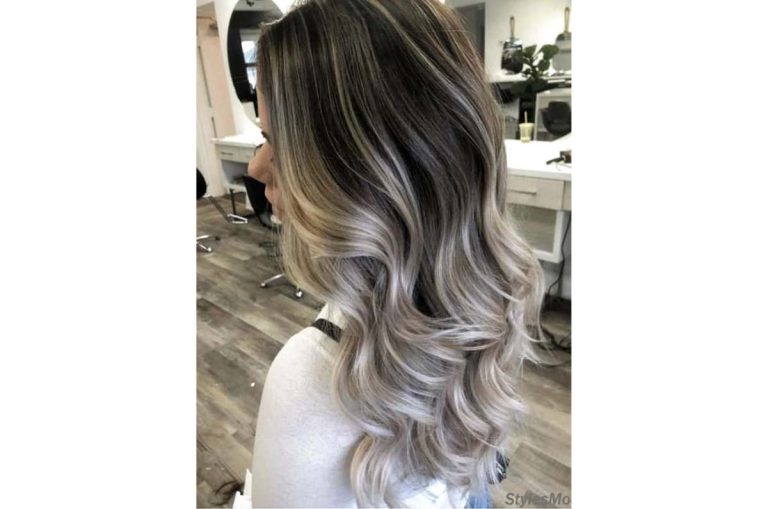 El balayage platinado se funde con el negro natural de la raíz para un efecto degradado que aporta luz y disimula las canas