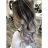 Mujer con cabello negro y balayage platinado difuminado desde la raíz, un estilo moderno y natural