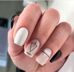 Uñas en tonos naturales con detalles geométricos sutiles que aportan elegancia sin esfuerzo