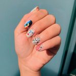 Manicura de estilo abstracto que combina diferentes colores y patrones para un look original y artístico