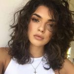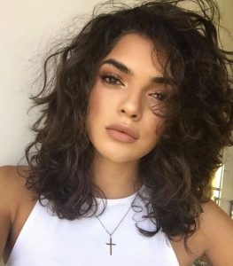 Corte shaggy de media melena con acabado despeinado y maquillaje en tonos tierra que refuerza un estilo natural