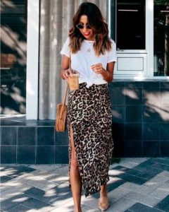 Falda larga con blusa blanca