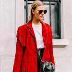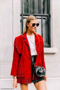 Combinar falda de piel con una chamarra roja crea un look atrevido y llamativo para destacar