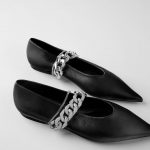 Flats negros de piel con aplicaciones de cadena plateada, un diseño moderno que combina moda y comodidad