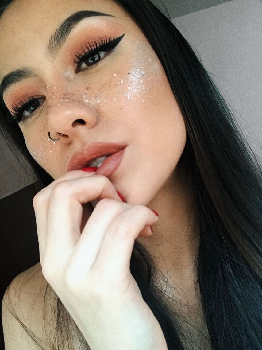 Si quieres algo ligeramente más exagerado ponte una cantidad considerable de sombra glitter a largo de tus pómulos y mejillas (como si fuera rubor). Con esta idea no necesitarás más que rematar con tu maquillaje diario.