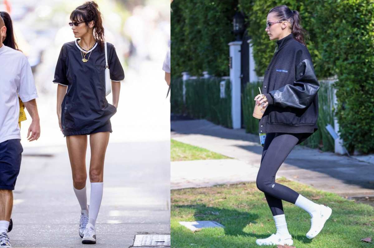 Como ha ocurrido anteriormente, Bella Hadid fue la encargada de poner de moda las calcetas largas como parte del estilo athleisure. La modelo ha optado por llevarlas con pantalones cortos,s leggings, y camisetas holgadas. Y si tu también quieres lucir chic con calcetas largas estos son algunas combinaciones que puedes hacer: