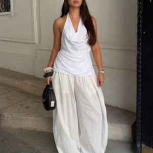 Unos ballon pants y una blusa holgada de cuello halter son perfectos para un look veraniego