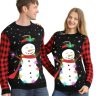 Una pareja combinando ugly sweaters de muñeco de nieve y escarcha, llevando alegría y estilo navideño a cada paso