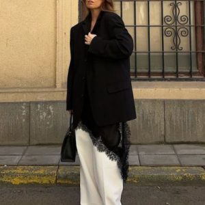 Look oversized con tops lencero y pantalones anchos