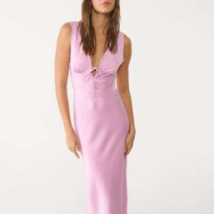 Este verano, los vestidos satinados vuelven con fuerza. La propuesta de Stradivarius en tono rosado combina modernidad y romanticismo, favorece el bronceado y es perfecta tanto para el día como para la noche, convirtiéndose en la prenda estrella de la temporada