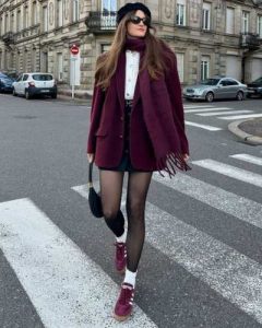 Conjunto de falda y blazer y bufanda a tono y blusa en color balnco