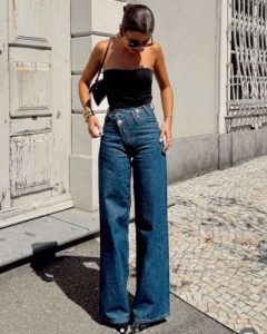Entre los tipos de jeans más recomendados según tu tipo de cuerpo, los wide leg de tiro alto destacan por su capacidad para definir la cintura y equilibrar proporciones.