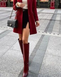 Outfits elegantes para Navidad con botas largas