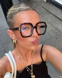 Las coletas altas son una gran opción de peinado para lucir lentes maximalistas